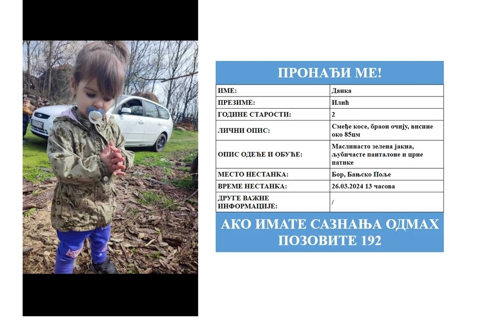 Наставља се потрага за несталом двогодишњом девојчицом