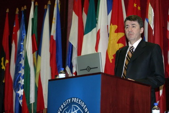 Он је навео да се у науку улаже 0,5 одсто БДП-а, што је много мање него у земљама ЕУ, и поновио да је циљ Србије да до 2014. године постане чланица Уније.
