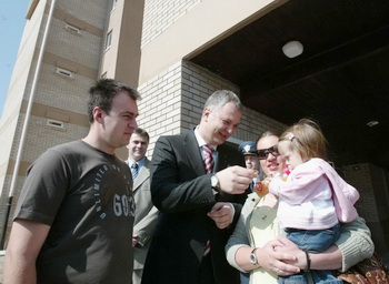 Он је данас био први гост у новом стану породице пуковника Горана Петковића, заменика начелника Управе за обавезе одбране, који је решење за стан добио пре осам година, у фебруару 2001. године.