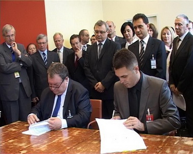Потписивању споразума је присуствовао потпредседник Владе Србије за европске интеграције и министар за науку и технолошки развој Божидар Ђелић.