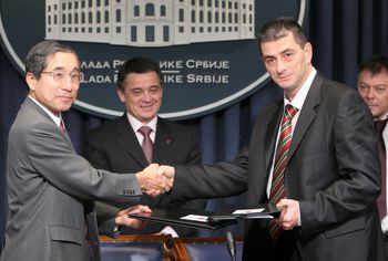 Уговор о донацији потписали су амбасадор Јапана у Републици Србији Тошио Цунозаки, директор Здравственог центра Сурдулица Драган Тодоровић и директор опште болнице Шабац Горан Малетић.