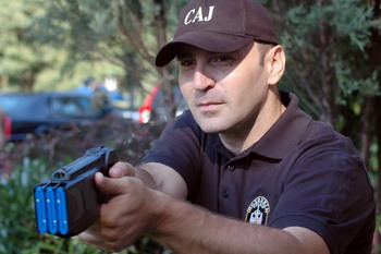 У оквиру презентације, припадник САЈ-а Саша Ђорђевић, инструктор за употребу тејзера, практично је објаснио како се употребљава тај електрошокер са максималним дометом од 10,67 метара.
