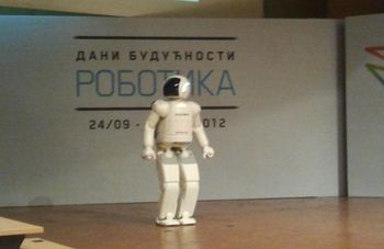 Тај најнапреднији човеколики робот може да носи послужавник, плеше, шутира лопту, да се пење уз степенице и извршава разне задатке, а до сада је био представљен у око 30 земаља.