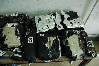 Детаљним прегледом, у направљеном дуплом дну патоса испод задњег и предњег дела возила, пронађено је укупно 14.796 грама марихуане, запаковане у 18 пакета.