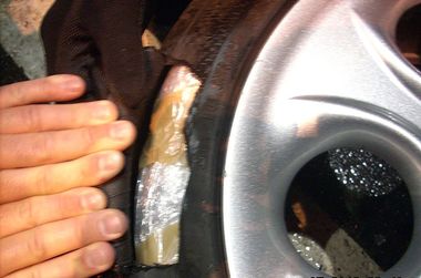 задњем десном блатобрану, пронађено је укупно 7.438 грама марихуане, запаковане у 12 пакета умотаних у прозирну фолију.