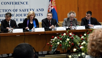 Као што је познато, проблеми везани за безбедан рад и очување интегритета новинара постоје и у Србији, као и у многим другим државама учесницама ОЕБС. О томе ћемо сигурно имати прилике да чујемо различита мишљења током ове конференције. Влада Србије и њени званичници су у свакој прилици оштро осуђивали случајеве насиља над новинарима. Надлежни органи, попут Министарства унутрашњих послова, полиције и Тужилаштва, ангажовани су на решавању свих преосталих нерешених случајева напада на припаднике новинарске професије. Ви ћете имати прилику да касније током конференције чујете нешто више о томе и од чланова Комисије за истраживање убистава новинара, чији су рад у више наврата веома позитивно оценили и ОЕБС и Европска унија.