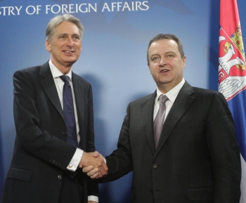 Први потпредседник Владе Републике Србије и министар спољних послова Ивица Дачић разговарао је данас са министром спољних послова Велике Британије Филипом Хамондом о перспективи јачања билатералних односа двеју земаља и напретку Србије у преговорима са ЕУ.