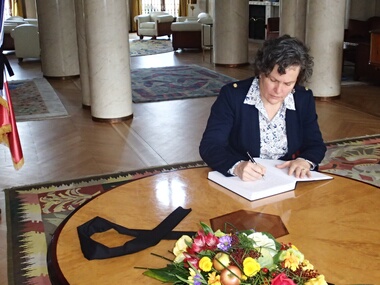 Потпредседник Владе Републике Србије и министар државне управе и локалне самоуправе Кори Удовички уписала се данас у књигу жалости која је, поводом терористичких напада у Паризу, отворена у Амбасади Француске у Београду.