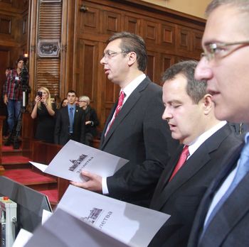 Текст заклетве, коју су након полагања, потписали премијер и чланови Владе гласи:"Заклињем се на оданост Републици Србији и својом чашћу обавезујем да ћу поштовати Устав и закон, да ћу дужност члана Владе вршити савесно, одговорно и предано и бити посвећен очувању Косова и Метохије унутар Републике Србије".