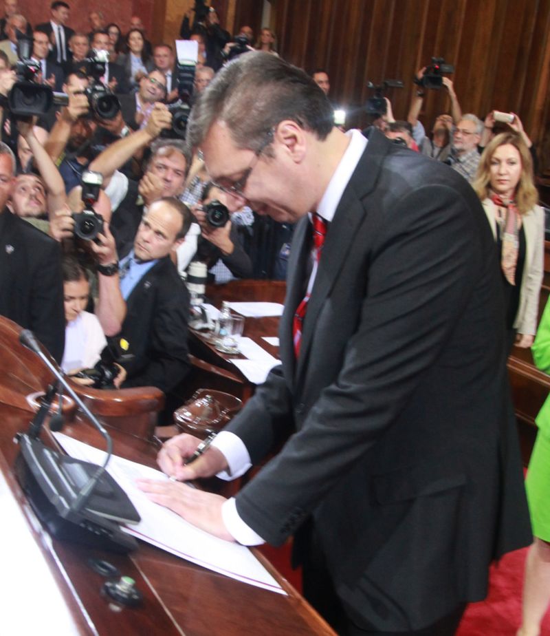 Нова Влада Републике Србије, на челу са председником Александром Вучићем, након што је изабрана у Народној скупштини, положила је свечану заклетву пред посланицима, чиме је почео да тече њен мандат.