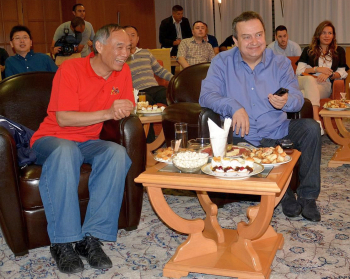 Амбасадор НР Кине у Србији Ли Манчанг и Ивица Дачић заједно прате финални одбојкашки меч на олимпијском турниру у Бразилу