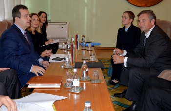 Први потпредседник Владе Републике Србије и министар спољних послова Ивица Дачић разговарао је данас са потпредседником Владе и министром иностраних послова Словеније Карлом Ерјавецом на маргинама треће заједничке седнице влада двеју земаља.