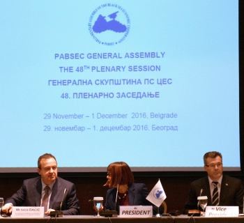 Велико ми је задовољство што је Београд последњих месеци центар најважнијих активности Организације за црноморску економску сарадњу и њених сродних тела. У новембру је, у организацији Министарства грађевинарства, саобраћаја и инфраструктуре Републике Србије одржан састанак министара задужених за транспорт земаља-чланица, данас је Народна скупштина Републике Србије домаћин парламентарним делегацијама, 8. децембра ће Привредна комора Србије организовати састанак Пословног савета, а 13. децембра ћемо састанком Савета министара иностраних послова завршити наше шестомесечно председавање овој организацији и предати дужност Републици Турској.