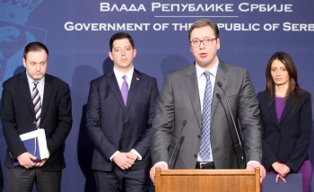 Конференцији за новинаре присуствовали су и министар правде Нела Кубуровић и директор Канцеларије за Косово и Метохију Марко Ђурић.