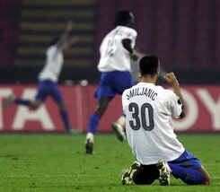Радост Бориса Смиљанића и његових саиграча после победоносног поготка Ђулија Росија