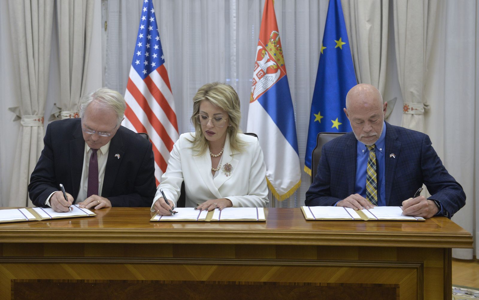 Министарка за европске интеграције у Влади Републике Србије Јадранка Јоксимовић потписала је данас са амбасадором САД у Србији Кристофером Хилом и вршиоцем дужности директора Мисије Америчке агенције за међународни развој (УСАИД) Денијем Робертсоном амандмане којима се Србији обезбеђује 19,5 милиона долара бесповратне помоћи.