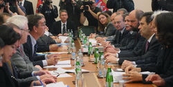 Координатор државног преговарачког тима за Косово и Метохију Слободан Самарџић изложио је како су текли преговори о будућем статусу Космета у Бечу.