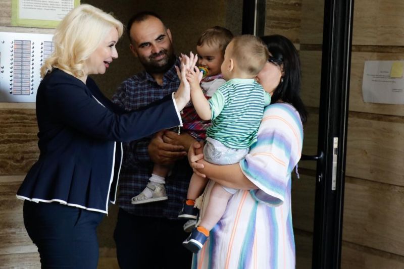 Министарка за бригу о породици и демографију у Влади Републике Србије Дарија Кисић посетила је у Крагујевцу породицу Миловановић са троје деце, која је купила свој стан уз помоћ државне субвенције за куповину прве непокретности.