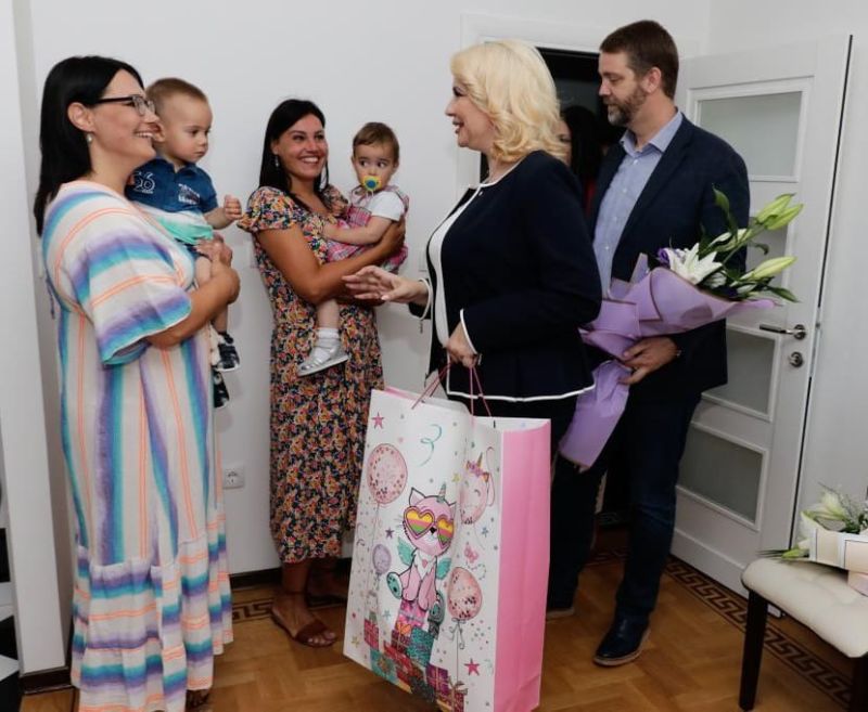 Она честитала је породици Миловановић на томе што су постали власници стана, који ће, како је истакла, бити препун дечјих осмеха, граје и игре, а наравно и најлепши, јер га красе три предивне бебе – Богдан, Никола и Николина.