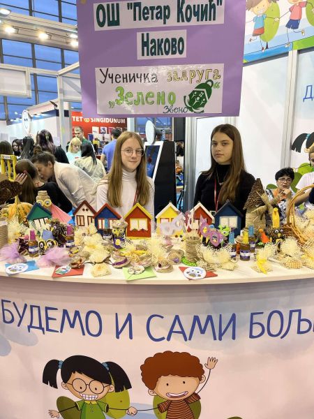 Данас се на штанду Министарства просвете представиле ученичке задруге и активности које школе спроводе у оквиру обогаћеног једносменског рада, као што су фотографска, драмска, музичка, еколошка и медијска секција.