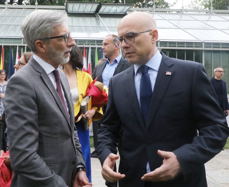 Председник Владе Републике Србије Милош Вучевић присуствовао је синоћ у Ботаничкој башти свечаном пријему који је, поводом прославе Дана Европе, oрганизовао шеф Делегације Европске уније у Србији Емануелe Жиофре.