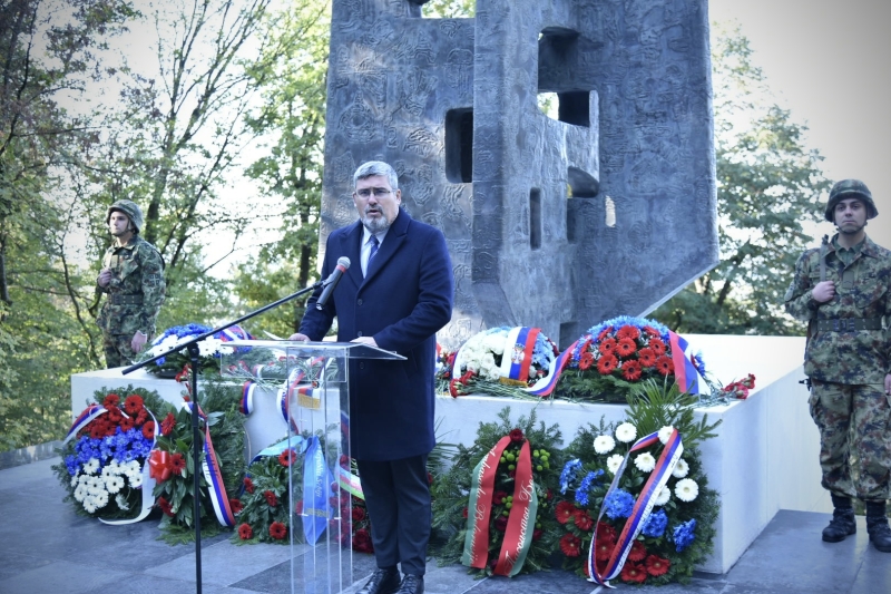 Старовић је поручио да никада не смемо заборавити да је рат био оправдан, одбрамбени, против освајача који су немилосрдно пљачкали наше земље, рушили градове и села и убијали становништво.