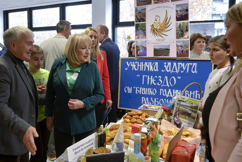 Министарка је указала на то да ученичке задруге код ученика развијају потенцијал за предузетништво и припремају их за тржиште рада.