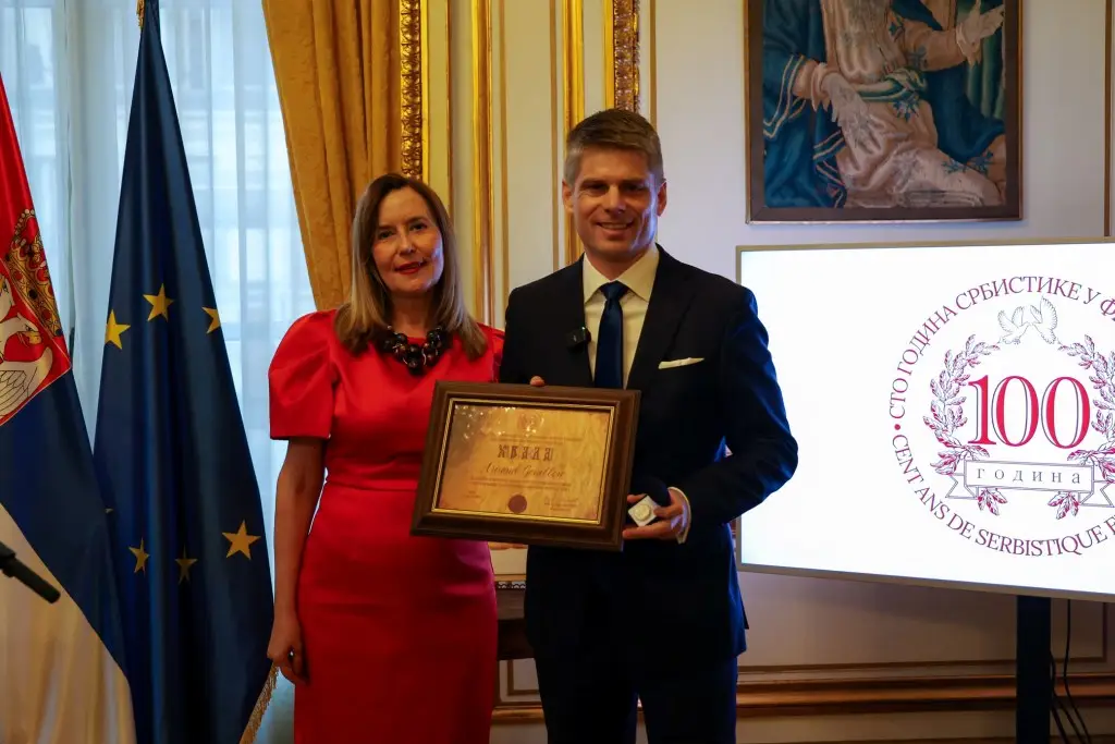 Свечани пријем обележила је и додела захвалница за помоћ у обележавању овог важног јубилеја, које је уручила председница Савеза славистичких друштава Србије Рајна Драгићевић.