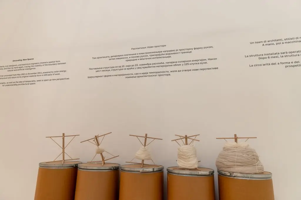 Према његовим речима, целокупан концепт овогодишњег српског павиљона повезан је са соларним панелима који покрећу инсталацију, стварајући симболичну везу између енергије прошлости, креативности и савремених технолошких решења.