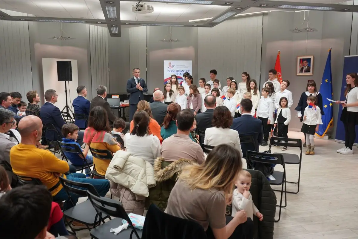 Милићевић је указао на то да је осећај припадности српској заједници гарант опстанка српског језика и писма, нагласивши да је изузетно значајно то што из године у годину расте број српске деце која похађају школу у Бриселу.