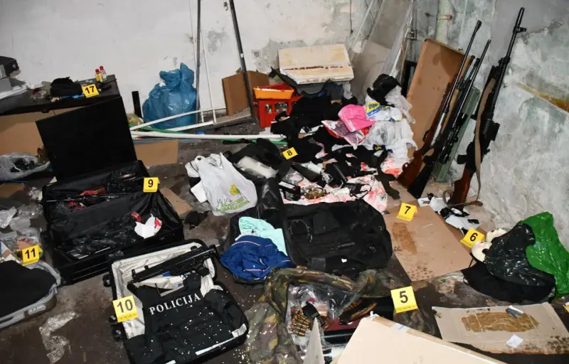 Полиција је приликом ове опсежне акције, претресом стана и других просторија и гаражног простора запленила две модификоване – импровизоване експлозивне направе са даљинским активирањем и пратећом опремом, пушкомитраљез, снајперску пушку, пет аутоматских пушака и три аутоматска пиштоља – хеклер, узи и шкорпион.