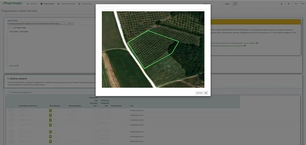 У оквиру апликације еАграр уведена је нова функционалност која омогућава приказ сателитских снимака пријављених парцела у РПГ.