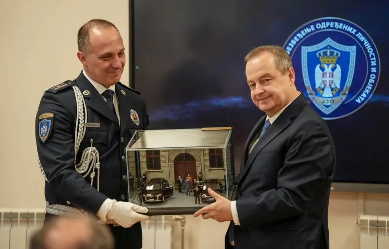 Он је овом приликом уручио припадницима Јединице за обезбеђење одређених личности и објеката награде поводом такмичења из области послова непосредне физичке заштите ВИП, као и специјалне награде, у виду макета, премијеру, председници Народне скупштине, министру унутрашњих послова, као и представницима Владе и руководиоцима у МУП-у.