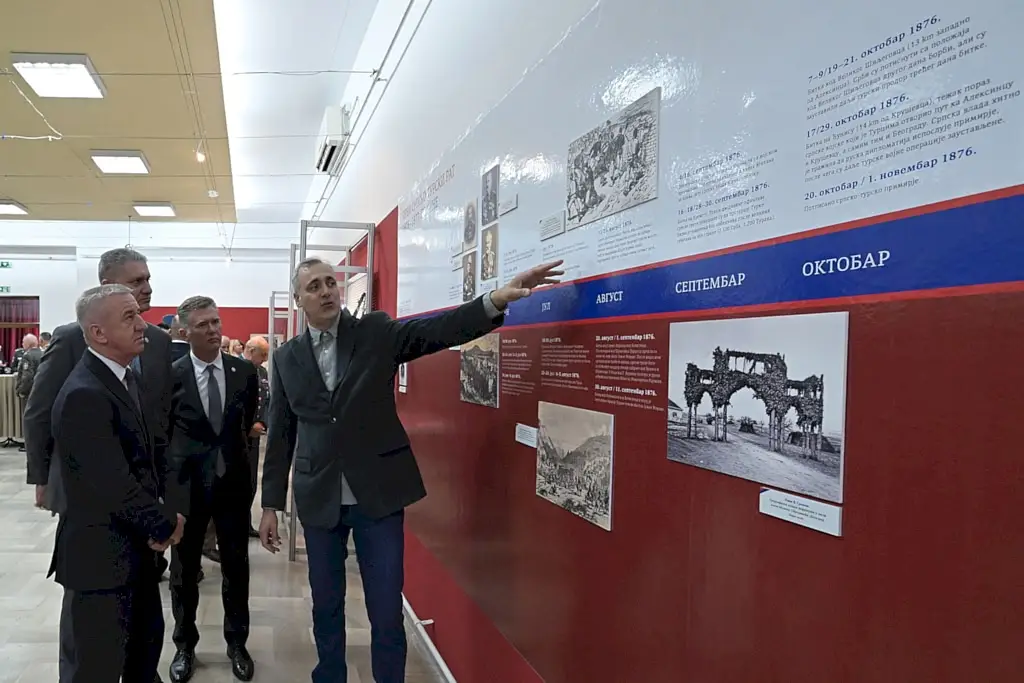 Радовић је истакао да се ове године обележава још један у низу јубилеја - 150 година од почетка Српско˗турских ратова и формирања Генералштаба, и напоменуо да изложба подсећа на тешке, али успешне ратове за ослобођење и независност које је Србија водила против најмоћнијег противника у раздобљу од 1876. до 1878. године.