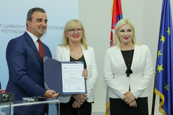Deputy Prime Minister and Minister of Construction, Transport and Infrastructure Zorana Mihajlovic today attended the presentation of the certificate of achieving the highest safety standards to Belgrade "Nikola Tesla".
