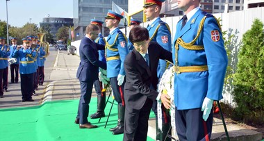Deputy Prime Minister and Minister of the Interior Nebojsa Stefanovic and Special Envoy of the President of the People's Republic of China and Secretary of the Central Commission for Political and Legal Affairs Jiandong Meng laid wreaths today to the memorial plaque erected as sign of gratitude to the People’s Republic of China and as a memory to the staff of the Chinese Embassy in Belgrade killed during the 1999 bombing.