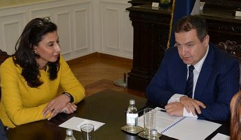 First Deputy Prime Minister and Minister of Foreign Affairs Ivica Dacic spoke today with Assistant Minister for Europe at the Ministry of Foreign Affairs of the State of Palestine Amal Jadou, who is leading this country’s delegation at the talks at the first session of bilateral political consultation of the two ministries.