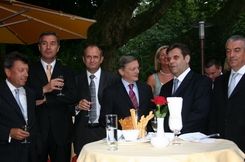 Serbian Prime Minister Vojislav Kostunica, 2nd right, talking to Austrian Chancellor Wolfgang Schuessel, 3rd right, host of the gathering in Salzburg