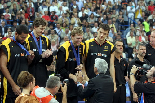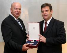 Serbian Prime Minister and President of the Organisational Committee of the 34th European Basketball Championship Vojislav Kostunica honoured today FIBA Europe President Jorgos Vasilokopoulos with the Medal of Nemanja of the First Degree, for fully supporting the state union of Serbia-Montenegro during its candidacy and selection to host the 2005 European Basketball Championship, as well as for the exceptional contribution to the development of European basketball.