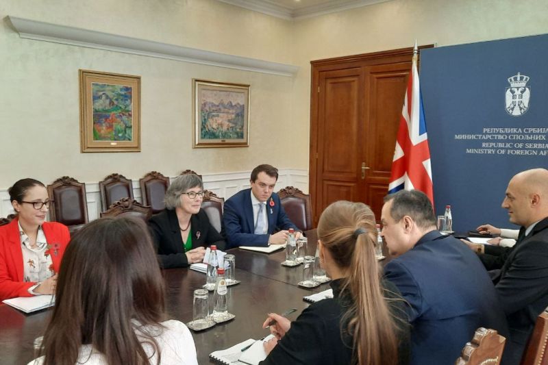 First Deputy Prime Minister and Minister of Foreign Affairs Ivica Dacic spoke with Ambassador of the United Kingdom of Great Britain and Northern Ireland to Serbia Sian MacLeod about the improvement of bilateral relations and current geopolitical issues.