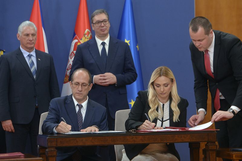 In the presence of President of the Republic of Serbia Aleksandar Vucic and President of the Republic of Cuba Miguel Mario Díaz-Canel y Bermúdez, the Memorandum of understanding between the two governments on cooperation in the field of agriculture was signed today, as well as the Agreement on the abolition of visas for holders of diplomatic and official passports.
