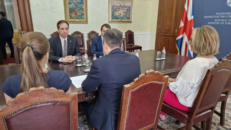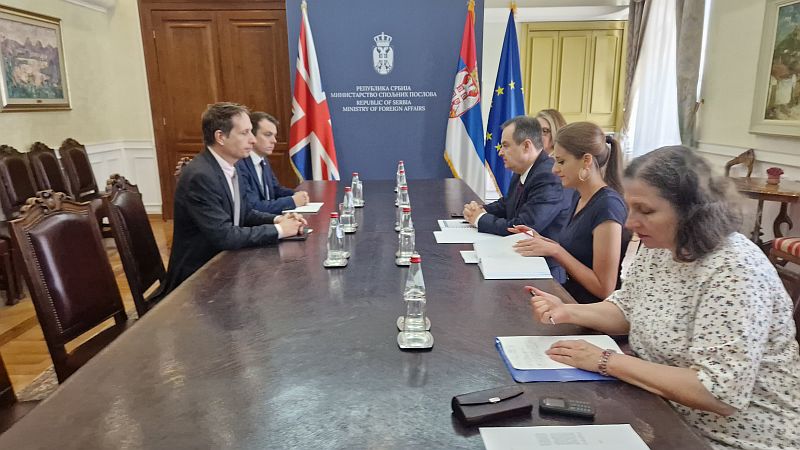 First Deputy Prime Minister and Minister of Foreign Affairs Ivica Dacic today summoned Chargé d’Affaires of the Embassy of the United Kingdom of Great Britain and Northern Ireland (UK) Dominic Otway on the occasion of a statement by Member of the Parliament of the United Kingdom and Chair of the Foreign Affairs Select Committee of the Parliament of the United Kingdom Alicia Kearns, who during her speech in the Parliament of the United Kingdom accused the Serbian Orthodox Church of smuggling weapons.