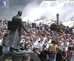 The monument in the Niagara Falls national park, some 200 meters from the falls, has been raised by the mission parish of St. George in Canada in cooperation with the governments of Canada and Serbia, and the sculpture presents a life size Tesla in the 39th year of his life standing on an alternating current motor.