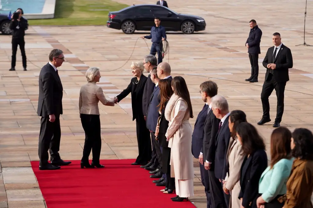 A ceremonial welcome was organised for the President of the European Commission, with an honour guard of the Serbian Armed Forces, the anthems of Serbia and the EU played and a 10-gun salute.