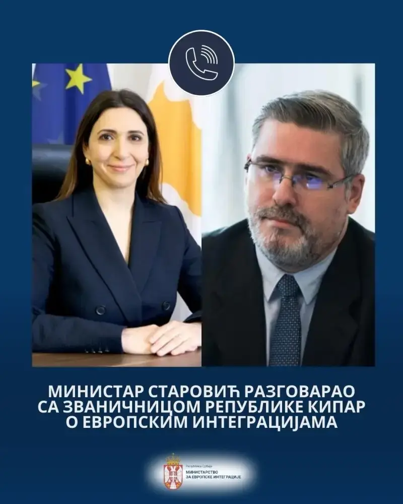 Minister of European Integration Nemanja Starović noted today, in a telephone conversation with Deputy Minister for European Affairs of the Republic of Cyprus Marilena Raouna the importance of overcoming the stalemate in Serbia’s negotiations with the EU.