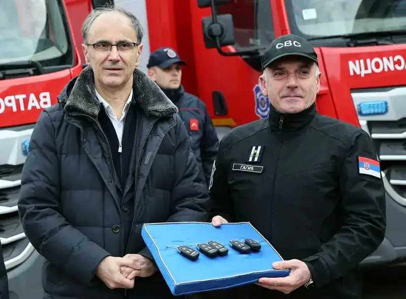 The keys to the new fire engines were handed over to Head of the Department for Fire and Rescue Units Nedeljko Gagić by Deputy Prime Minister and Minister of the Interior Ivica Dačić, who stated that there were approximately 40,000 interventions last year, which was the most in the last 20 years.