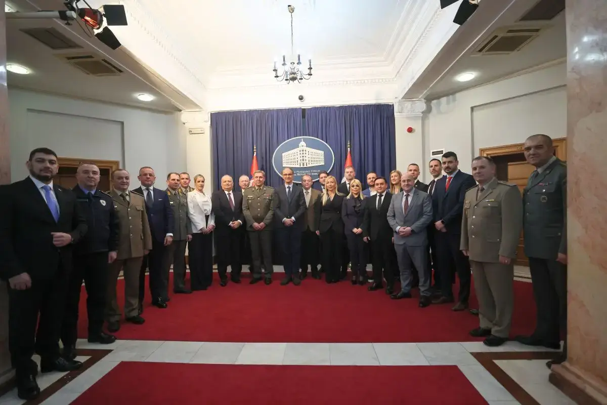 Prime Minister Professor Đuro Macut, MD, DSc, spoke today with representatives of the National Defence School “Vojvoda Radomir Putnik,” which is part of the University of Defence, about improving the education system and training of personnel in the field of security and defence.