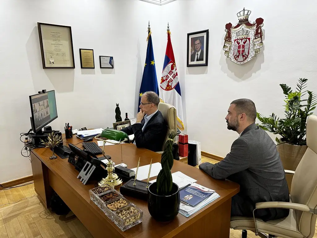 Prime Minister Professor Đuro Macut, MD, DSc, held an online meeting today with Ambassador and Head of the Mission of the Republic of Serbia to the European Union and Head of the Operational Team for Serbia’s accession to the EU Danijel Apostolović and representatives of the Ministry of Information and Telecommunications, the Ministry of Public Administration and Local Self-Government, the Ministry of European Integration, the Regulatory Authority for Electronic Communications and Postal Services (RATEL) and the General Secretariat of the Government.