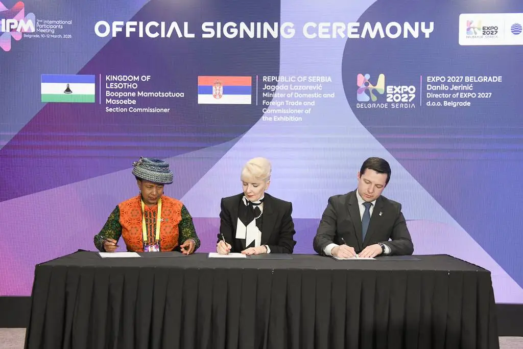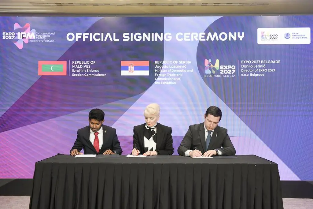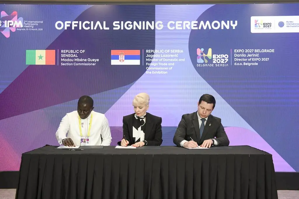 Lazarević today signed contracts on participation in the Specialised Expo 2027 Belgrade with Commissioners for Expo 2027 Belgrade from 13 countries: Azerbaijan, Germany, São Tomé and Príncipe, Greece, Lesotho, Uganda, Algeria, Benin, Burkina Faso, Burundi, Congo, Eritrea, Senegal and the Maldives.