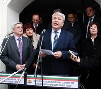 Zoran Stojkovic, left, and Georgi Petkanov addressing those present